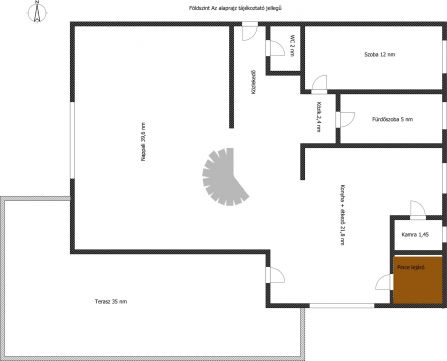 tágas, közel 40 m²-es nappali, konyha + étkező, szoba, kamra, WC, közlekedők, valamint egy panorámás terasz, amely ideális családi vagy baráti összejövetelekhez.