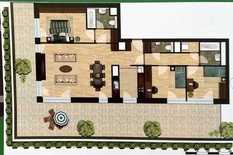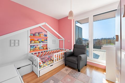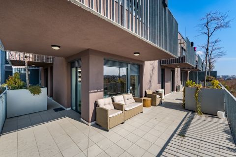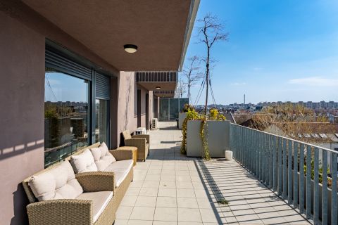 A lakás déli és nyugati fekvésű, rendkívül világos, és egy közel 70 m²-es sarokterasz kapcsolódik hozzá, amely tovább növeli a térérzetet és a lakókomfortot.