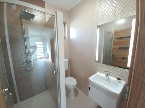 - terasszal kapcsolatos (34nm) konyha- étkező- nappali (31 nm) , 3 hálószoba és 2 minden igényt kiszolgáló fürdőszoba került kialakításra