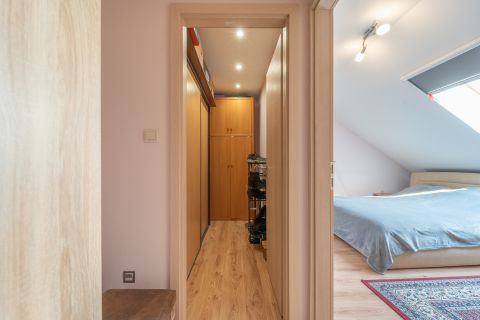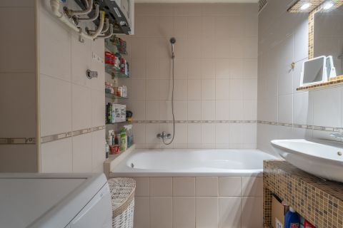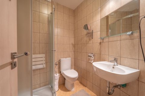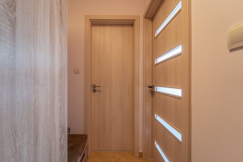Itt kapott helyet a második fürdőszoba WC-vel, ami jelentősen növeli a lakás komfortját.