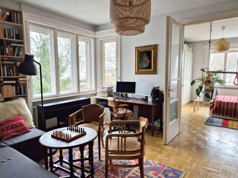 A 90 m²-ES, NAGY SZOBÁKKAL rendelkező lakás a ház 2. EMELETÉN található, amelyet egy 9 m²-ES FEDETT TERASZ és egy KIS ERKÉLY egészít ki. A terasz ideális a KELLEMES REGGELI KÁVÉHOZ, miközben a ZÖLD KERTRE nyíló kilátásban LOMBOS FÁK, MADARAK ÉS MÓKUSOK teremtik meg a különleges budai hangulatot.