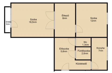 Praktikus terek: 2 külön nyíló szoba, tágas konyha-étkező, külön zuhanyzós fürdőszoba és WC.