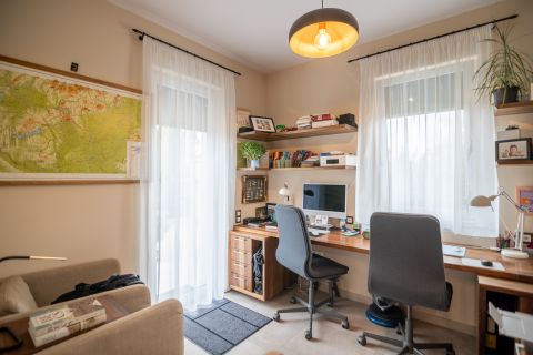 nappali-konyha +3 hálószoba+ 1 dolgozószoba, két fürdőszoba biztosít elegendő teret a kényelmes mindennapokhoz, akár otthoni munkavégzés mellett is.