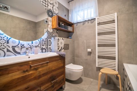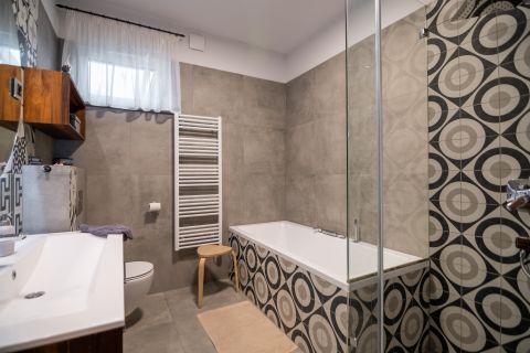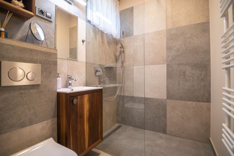 A modern komfortot hőszivattyús hűtés-fűtés rendszer biztosítja, amely energiatakarékos és korszerű megoldást nyújt.