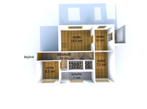 - 3 +1 szoba ,konyha -étkezővel,zuhanyzós fürdőszoba külön wc,a folyosón beépített szekrény