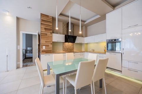 A lakást jelenlegi tulajdonosa néhány éve teljesen felújította, saját ízlésére szabta. Kiváló minőségű fa nyílászárók, prémium burkolatok és szaniterek, egyedi fűtőtestek és klíma, minden hangulatnak megfelelő világítás, elegáns, gépesített konyha, egyedi design jellemzi. Ide az új tulajdonosnak csak beköltöznie kell.