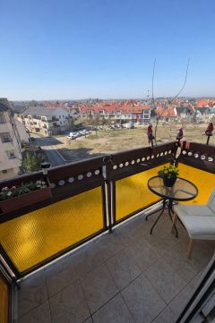 A lakás erkélye, amely 3 négyzetméteres, csodás panorámát kínál, ahol reggelente egy csésze kávé mellett élvezheted a napfelkeltét vagy esténként a naplementét nézheted.