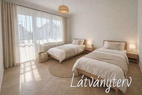 - nappali, 2 hálószoba, fürdőszoba toalettel, közlekedő.