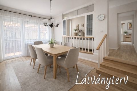 Az ingatlan 180 m² nettó alapterületű, elrendezése 2 nappali + 4 szoba valamint 2 fürdőszoba, így kiváló választás lehet nagyobb családok vagy akár több generáció számára is.