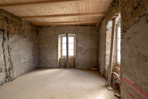 * A felújítás során megtörtént az újrabetonozás, az aljzatkialakítás, a padlófűtés kialakítása, valamint új hőszigetelt nyílászárók kerültek beépítésre