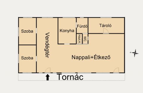 * Az épület kettő szobát, egy hatalmas nappali+ étkezőt, egy tágas vendégteret, egy konyhát, egy fürdőt, egy WC-t, egy háztartási helyiséget, valamint egy tárolót foglal magába
