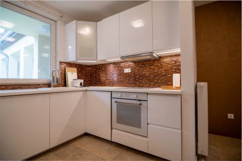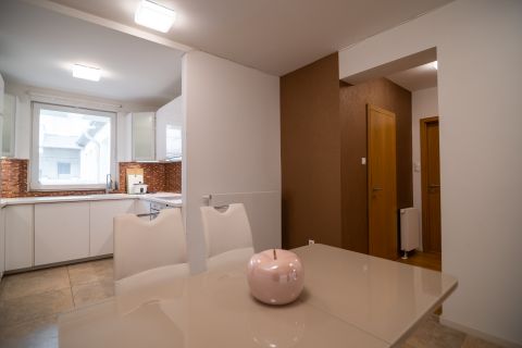 Minőségi, olasz burkolatokat használtak a fürdőszobában, konyhában és előszobában, és fa parketta a nappaliban, hálószobában. Magas színvonalú hang- és hőszigetelés, korszerű hőszigetelő üvegezésű nyílászárók, prémium szaniterek és csaptelepek kerültek beépítésre a lakás kialakítása során.