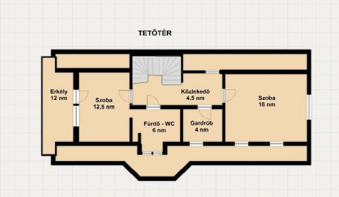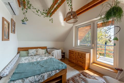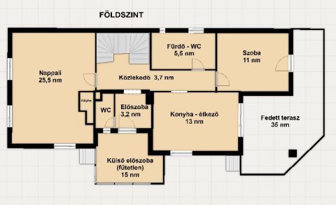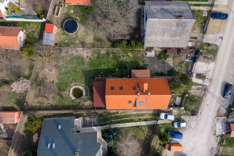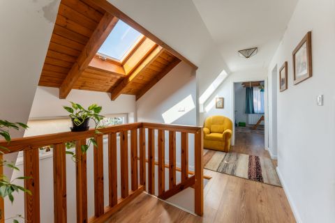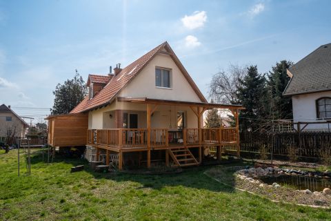+ egy nagy méretű fedett terasz, mely a konyhából nyílik és kis lépcsővel kapcsolódik a kerthez (35 nm)