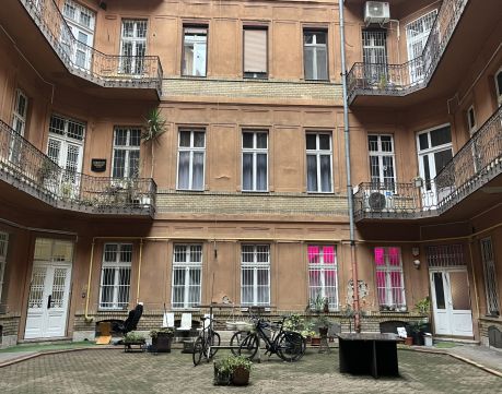Ablakai belső udvarra és csendes mellékutcára néznek.