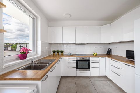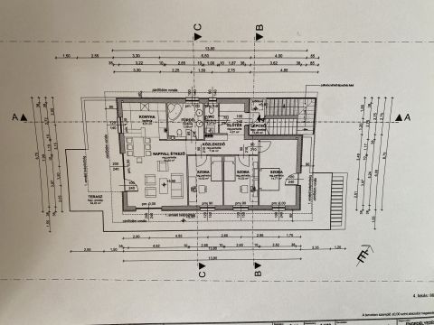 Kondenzációs gázcirkó, 2 klíma, külön mérőórák, minőségi burkolatok és gépesített konyha.