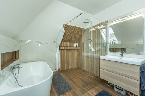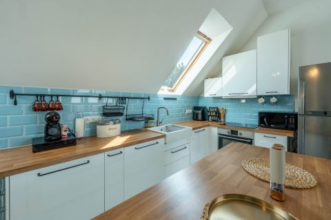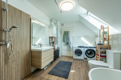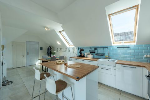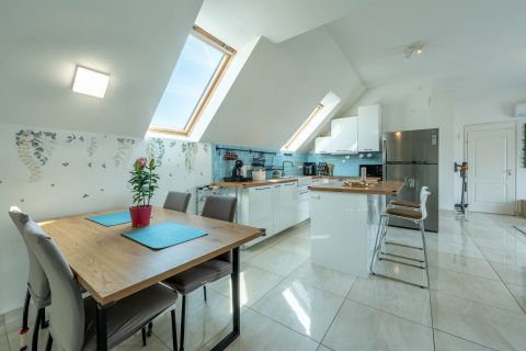 Eladó Budapest XVIII. kerületének erdőközeli részén, az Újpéteri városrészben egy 83 m²-es, világos tetőtéri lakás egy mindössze 3 albetétes társasházban.