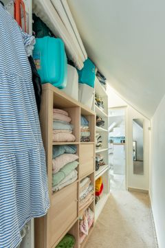 külön tároló + padlás, amely részben burkolt, így jól használható extra tárolásra