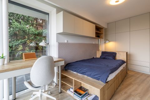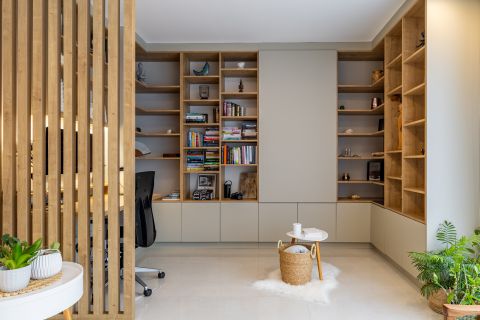 Világos tónusok, meleg fa felületek és finoman textúrált anyagok fonódnak össze, mintha minden részlet azt suttogná: „jó itthon lenni”.