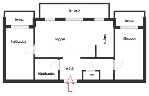 + amerikai konyhás nappali, két különnyíló szoba, fürdőszoba, wc + kézmosó, előtér található benne