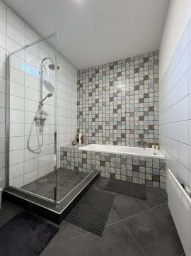 A fűtésről elektromos panelek gondoskodnak, valamint a nappaliban található hangulatos kandalló biztosítja a meleget. A meleg vizet villanybojler szolgáltatja. Villamos áram teljesítmény: 3×16A.