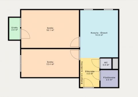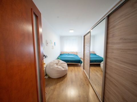 Az 56 négyzetméteres, praktikus elosztású lakás két külön nyíló szobával rendelkezik, így kiváló életteret biztosít akár párok, egyedülállók, akár bérlők számára is. A helyiségek jól szeparáltak, ideális lehet otthoni munkavégzéshez, tanuláshoz vagy vendégfogadáshoz is. A nappaliból közvetlenül kiléphetünk az erkélyre, ahonnan panorámás kilátás nyílik a környékre.