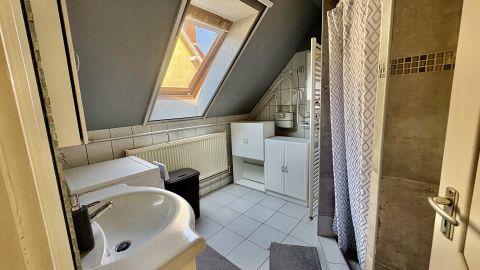 emeleti lakás fűtést és melegvizet a fürdőszobában elhelyezett kombi cirkó biztosítja