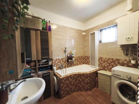 A modern fürdőszoba egyedi dizájnja és a beépített bútorok, gépesített konyha teszi komfortossá az ingatlant, klíma és gázcirkó fűtés biztosítja, hogy minden évszakban kellemes hőmérséklet legyen.