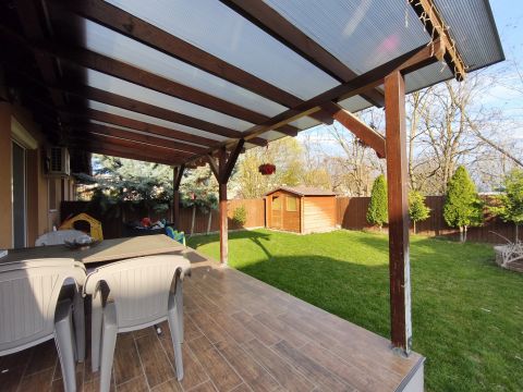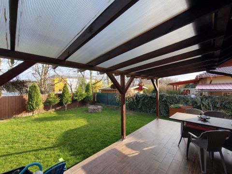 Megvételre kínáljuk ezt a napelemes családi házat, mely a szomszéddal kizárólag a tárolónál találkozik, teljesen elszeparált kerttel és autóbeállóval.