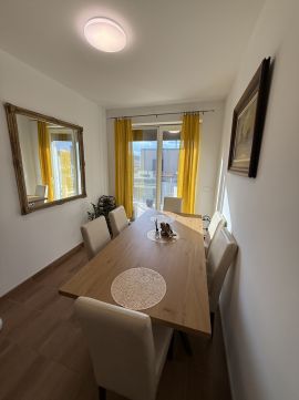 Az ingatlan tízlakásos társasház második emeletén helyezkedik el. Impozáns terasza U alakban öleli körbe a lakást, amelynek négy különnyíló szobájából,és a nappaliból a nap bármely időpontjában találunk akár napfényes, vagy árnyékos helyet a kellemes időtöltéshez.