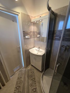 - világos helyiségek, modern, ízléses fürdőszoba