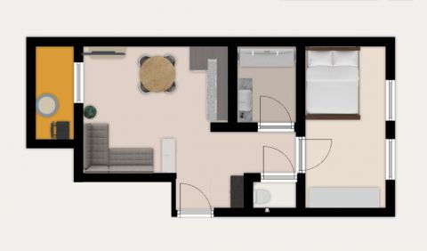 - Amerikai konyhás nappali, plusz 1 hálószoba