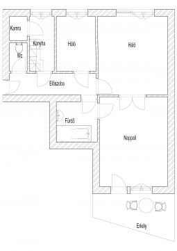 Az ingatlan kiváló adottsága révén könnyen kialakítható amerikai konyhás nappali , 2 háló és 2 fürdőszoba is.