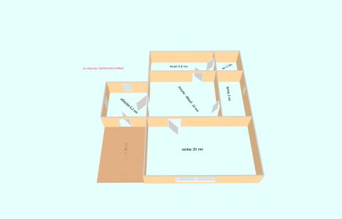 Helyiségek: egy szoba, konyha-étkező, kamra, előszoba, fürdőszoba, külön toalett.