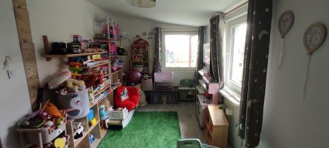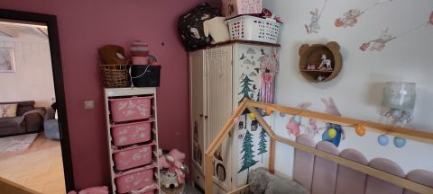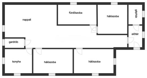 A központi nappaliból minden helyiség külön nyílik (3 hálószoba, konyha, gardrób, fürdőszoba.)