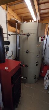 Az épületbe zárt szélfogón keresztül léphetünk be, innen nyílik a kazánház, ahol a nagyteljesítményű vegyestüzelésű kazán pufferrel kapott helyet.