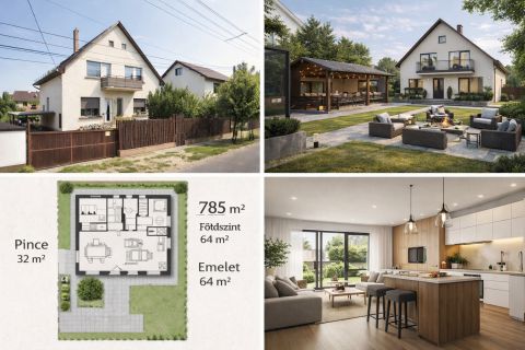 Eladó egy háromszintes (pince + földszint + emelet) családi ház, amely egy 784 m²-es telken helyezkedik el. Az ingatlan kiváló választás lehet nagyobb családoknak vagy akár két generáció együttélésére is.