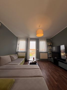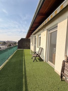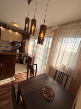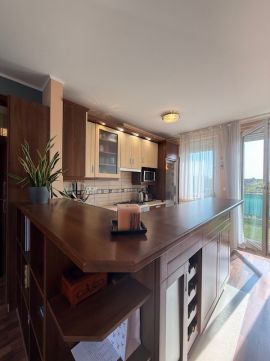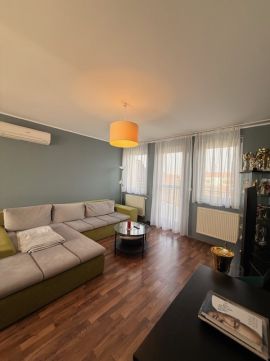 Amerikai konyhás nappali + 2 KÜLÖN NYÍLÓ SZOBA, 2x27 m2-es erkély, fürdőszoba, külön mellékhelység, SAJÁT AUTÓBEÁLLÓ és 5 m2-es saját TÁROLÓ, szép állapot, ahogy a képek is mutatják.