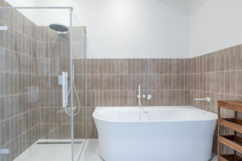 - A vizes helyiségek járólappal, a további helyiségek parkettával burkoltak.