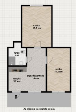 Az ingatlan a két külön nyíló szobája egy nagyméretű közlekedőből nyílik, ami ideális helyszín lehet nagyobb társaság fogadására is.
