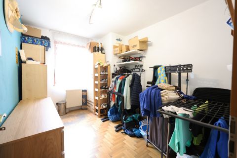 Az ingatlan elosztása kiváló, amely egy tágas napfényes nappaliból, egy étkezőként is funkcionáló tágas közös helységből és három különnyíló hálószobából áll, így az önálló és a közös élettér is megfelelően biztosított a lakásban.