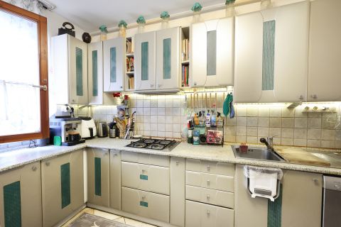 A konyha külön helységben kapott helyet, ám az ingatlanon belül a válaszfalak mozgatásával, rengeteg lehetőség rejt magában.