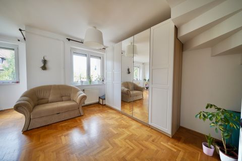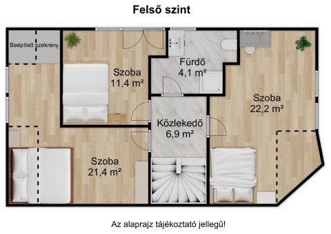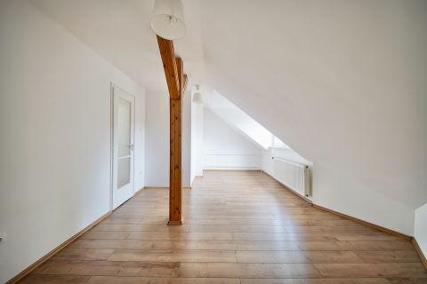 Az ingatlant praktikus kialakítású, a felső szinten elhelyezkedő tetőtér pedig további életteret biztosít, így akár dolgozószobának, gyerekszobának, vendégszobának is alkalmas.