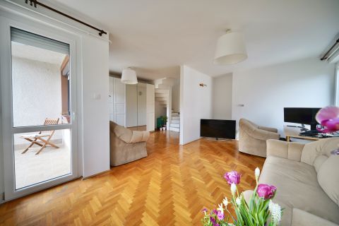 Az ingatlan erkélyes, szép kilátású udvarra néző ablakokkal, és tágas terekkel rendelkezik. A lakás alsó szintje rendezett, a felső szintje 5 éven belül lett újraburkolva, kifestve és felújítva.