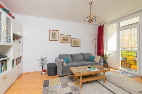 A 3 szobás földszinti ingatlant a lépcsőházból egy lépcsősoron (12 db. lépcső) lehet megközelíteni.