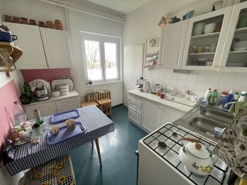 -a konyha tágas, ablakkal ellátott, innen nyílik egy kamra is,