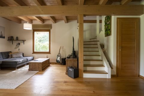Prémium burkolatok: tömör tölgy padló és lépcső, fa födém, mészkő terasz