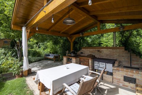 Hangulatos nyárikonyha, szaletli bográcsozóval és sparhelttel
