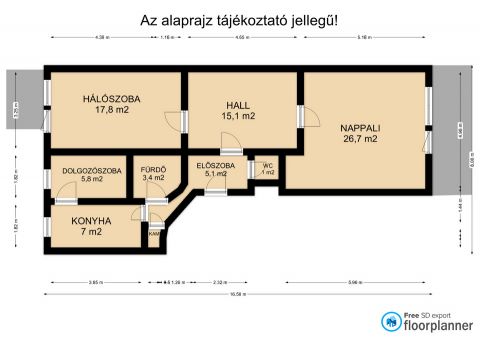 A lakáshoz közös pince tartozik, a közös költség 33 600 Ft.