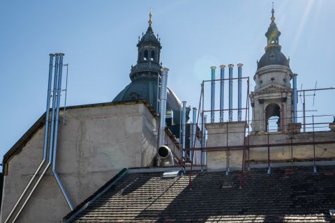 Eladó egy felújított, legfelső emeleti studio lakás Hercegprímás utcában, gyönyörű panorámával a Bazilikára.