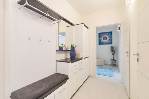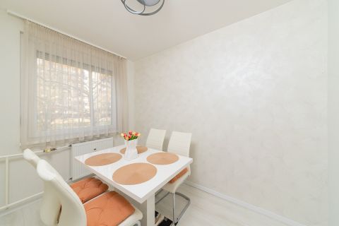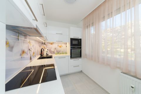 XV. kerületben Újpalotán csendes, parkos környezetben 7 szintes panelprogramos, szigetelt, liftes ház első emeletén kínálunk megvásárlásra egy csodaszép, minőségi felújításon átesett 68 nm-es, erkélyes (loggia), 4 szobás lakást. Az utóbbi években a lakást műszakilag és esztétikailag is felújították, a felújítás óta senki sem lakott az ingatlanban, a következő tulajdonosa újként veheti birtokba. A teljesség igénye nélkül: elektromos hálózat (falban vezetve), vízcsövek, lefolyók felújítása, a nyílászárók hőszigetelt üvegezésű műanyag ablakokra lettek cserélve (redőny, szúnyogháló van), radiátorok cseréje, új bejárati ajtó, modern riasztórendszer kiépítve, gyönyörű, igényes burkolatok, szaniterek, modern minőségi konyhabútor beépített, vadonatúj gépekkel. A falakon minőségi, szép tapéták, a padló újra lett betonozva burkolás előtt. Távfűtés van egyedi méréssel, nyáron a kellemes hőmérsékletről két klíma gondoskodik. A házban kulturált a lakóközösség, a környék csendes, parkos, az ellátottság kiváló, bevásárlás, orvos, gyógyszertár, tömegközlekedés a közelben. Az ingatlan üres, tehermentes, akár azonnal birtokba vehető.